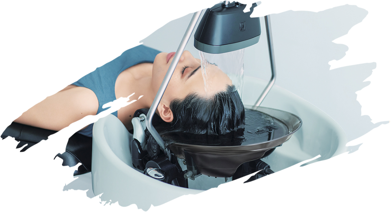 フェイスラインからお湯を掛け流しながら、溜めたお湯に頭全体を浸すことで日常では体験できない至福のリラックスタイムを実現。